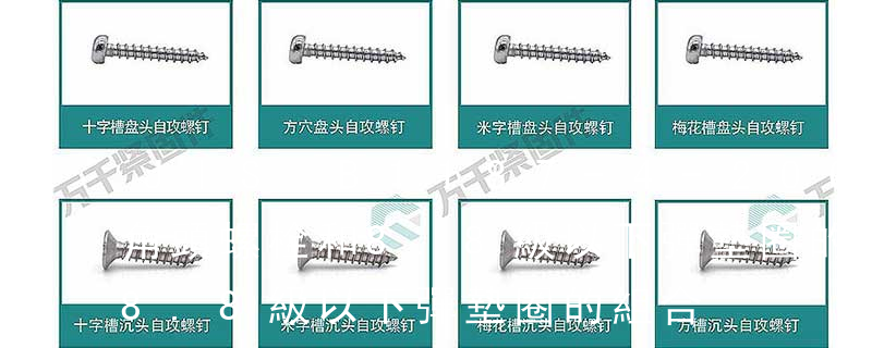 1.機螺釘 2.自攻螺釘 3.鉆尾螺釘 4.墻板釘 5.纖維板釘 6.木螺釘7.六角木螺釘 8.不脫出螺釘 9.組合螺釘 10.微型螺釘 11.家具螺釘 12.電子螺釘頭型:1.六角頭(hexagon head) 2.六角頭法蘭面(hexagon head with flange) 3.