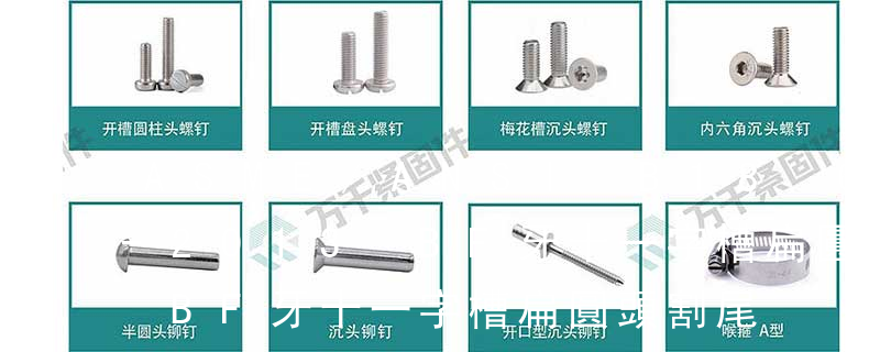 槽型:1.一字2.內三角3.內角四方4.十字5.米字6.花形7.梅花形8.花形一字9.特形10.內六角英文名稱十字槽盤頭組合機絲牙螺釘 采用的是GB818 Cross recessed pan head Combination screws十字槽盤頭機絲牙螺釘 采用的是GB818 Cross